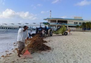 Durante esta actividad fueron retiradas más de 80 toneladas de alga marina con ayuda de un tractor, carretillas, cepillos y palas, mismas que se suman a las 77 toneladas que se levantaron en enero y los primeros días de febrero, informó el titular de la dependencia, Hugo Uribe Nicolás.