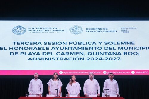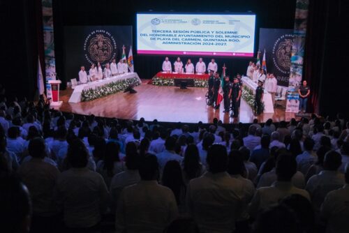 Playa del Carmen.- “Playa del Carmen es prueba viviente de que la diversidad enriquece, de que cuando las culturas se encuentran con respeto y amor nacen comunidades más fuertes, más creativas, más humanas” expresó la gobernadora Mara Lezama Espinosa durante la tercera Sesión Pública y Solemne del Ayuntamiento, encabezada por la presidenta Estefanía Mercado, en conmemoración del 32 aniversario de la fundación del municipio.