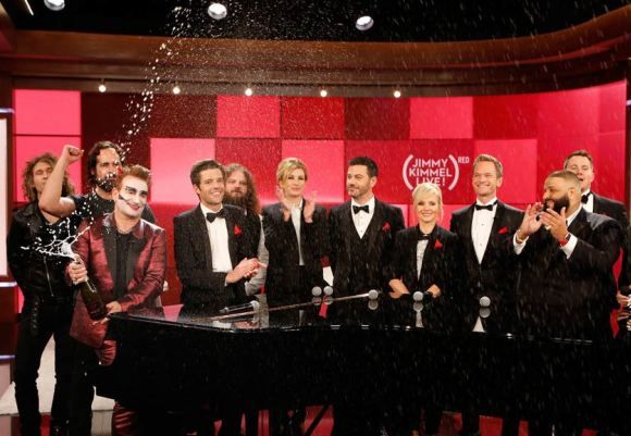 El músico dublinés de 56 años se caracterizó con sus cuernos y el rostro maquillado para interpretar el tema de Cole Porter, Well, Did You Evah!, y unirse a otros personajes famosos como el grupo The Killers, Kristen Bell, DJ Khaled, Halsey, Herbie Hancock, Neil Patrick Harris, Julia Roberts y Channing Tatum, en el programa Jimmy Kimmel Live!