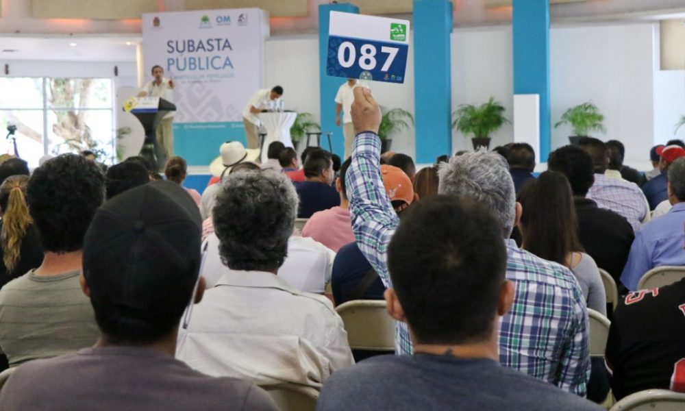 CHETUMAL, Quintana Roo, 20 de agosto.- La Oficialía Mayor de Gobierno llevará a cabo el próximo 11 de septiembre la subasta pública presencial a martillo de vehículos con 150 partidas, entre automóviles, camionetas, motocicletas, maquinaria y siete lotes ferrosos.