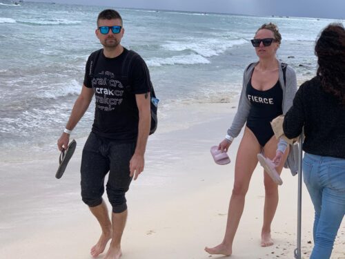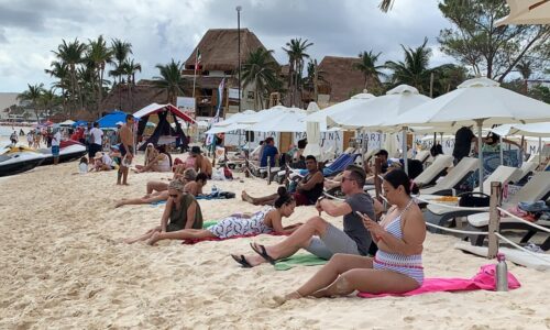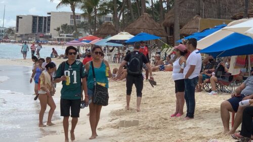 En Playa del Carmen se pudo observar a decenas de bañistas con suéteres, playeras, pareos usados como “cobijas” para taparse de la fría brisa marina, pero disfrutando de las espectaculares postales que muestra el Caribe Mexicano.