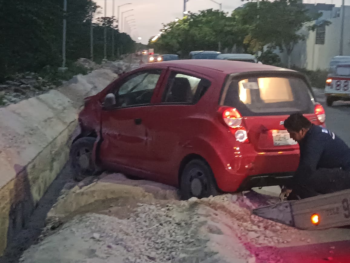 PLAYA DEL CARMEN, Quintana Roo, 01 mayo. – Conductor de un vehículo particular que circulaba a exceso de velocidad y aparentemente en estado inconveniente perdió el control al volante de su vehículo y cayó en una zanja.