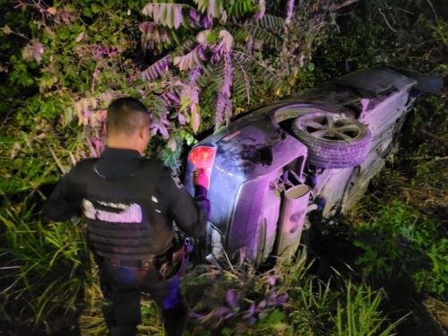 El percance se registró pasando la gasera, bajo el puente vial, cuando el conductor del vehículo intenta tomar la vía alterna para tomar el retorno hacia la Marina de Puerto Aventuras.