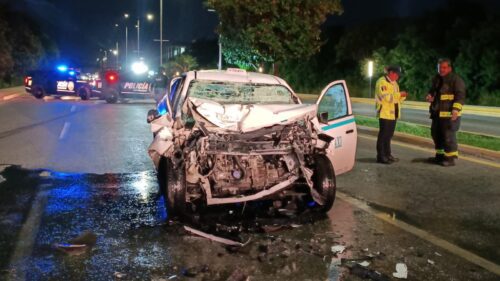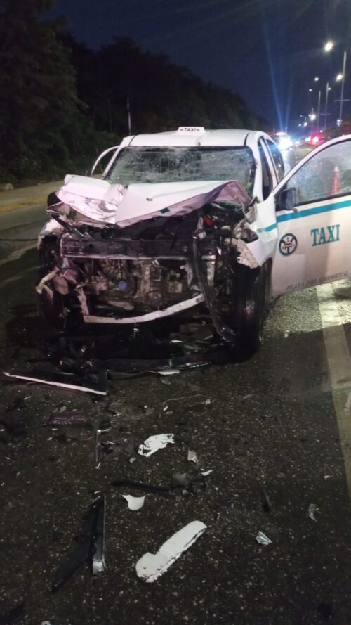 PLAYA DEL CARMEN, Quintana Roo, 17 de diciembre de 2025.- Un taxista protagonizó un fuerte accidente vial durante la madrugada al impactarse contra la parte trasera de un tráiler en las inmediaciones de la colonia Cruz de Servicios, dejando su unidad prácticamente destruida y posteriormente abandonándola en el lugar.