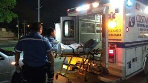 La mujer de unos 35 años de edad aproximadamente, fue vista por vecinos de la colonia Bellavista pero al parecer abordó una van blanca la cual la abandono sobre la avenida 115 con la avenida 11 Sur donde un taxista local la auxilio y la llevó hasta la avenida 115 con la calle 26 de la colonia Ejidal, donde fue atendida por varias féminas hasta que llegaron los socorristas de la empresa privada Costamed.