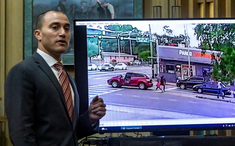 Delfino se bajo del vehículo para discutir con Hernández, momentos en que el su coche, aparentemente sin frenos, empezó a moverse, una situación que obligó a Lyle a bajar para tratar de detenerlo, y que le produjo “pánico”, sentimiento que se incrementó cuando vio que el cubano se daba vuelta y se dirigía a su vehículo, según expresó su abogado en la corte.