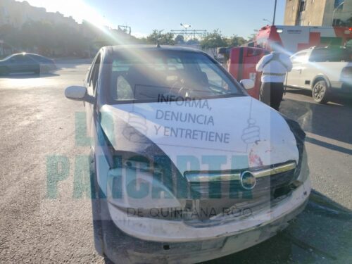 CANCÚN, Quintana Roo, 7 de enero de 2026.- La mañana de este miércoles se registró un accidente de tránsito en el fraccionamiento Paseos del Mar, específicamente en la intersección de la avenida Obsidiana con la calle Isla Aruba, el cual dejó como saldo una persona lesionada y un vehículo declarado como pérdida total.