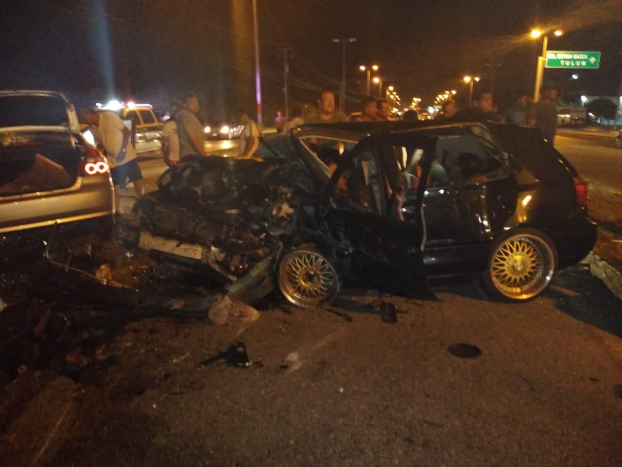 El accidente se registró a las 20:15 horas entre dos autos, un golf negro con placas de Quintana Roo y un Chevrolet Aveo color gris con placas de Yucatán que se impactaron de frente.