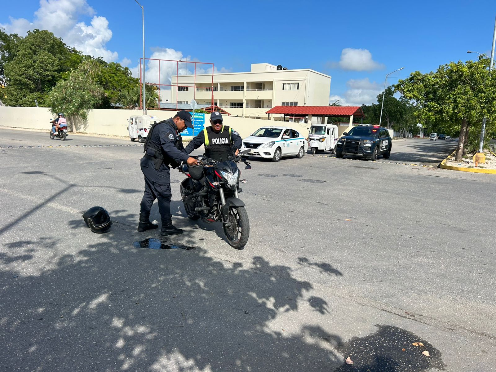 Playa del Carmen.– Una mujer de la tercera edad resultó lesionada luego de que el mototaxi en el que viajaba se viera involucrado en un accidente con una motocicleta, la mañana de este lunes en el fraccionamiento Villas del Sol.
