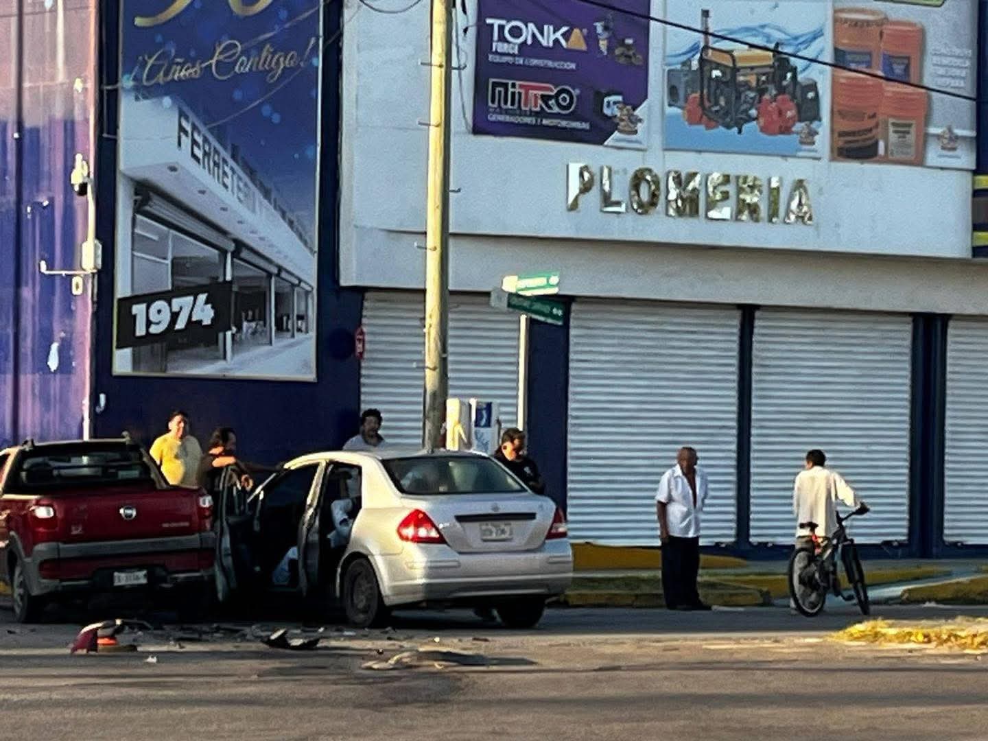 CHETUMAL, Quintana Roo, 23 de noviembre. – Tres personas lesionadas fue el resultado de un accidente que se registró en el cruce de la avenida Venustiano Carranza con Independencia, en el que una camioneta fue embestida por un automóvil de la marca Nissan.