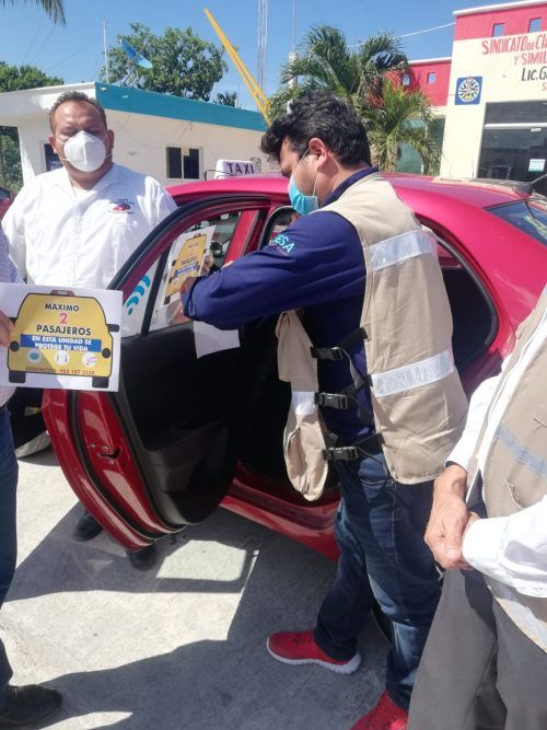 Se capacitó a choferes del Sindicato de Taxistas de Isla Mujeres sobre las medidas de prevención sanitaria, en el cumplimiento a la capacidad máxima de 3 personas en taxis y 8 persona en combis, la obligación del uso de cubrebocas, de realizar una desinfección diaria de las unidades y contar con alcohol en gel.