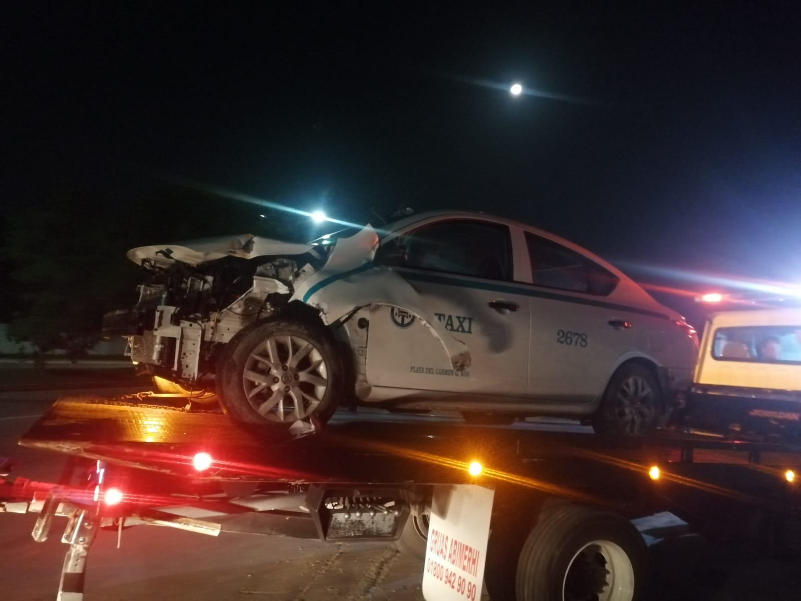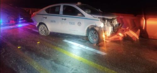 El hecho ocurrió durante la madrugada cuando acelerado taxista abordo de su unidad con económico 2678, agarro como pista de carreras la desviación colocada en la zona de agrietamiento de la carretera a la altura del hotel iberostar y chocó contra las barreras de contención.
