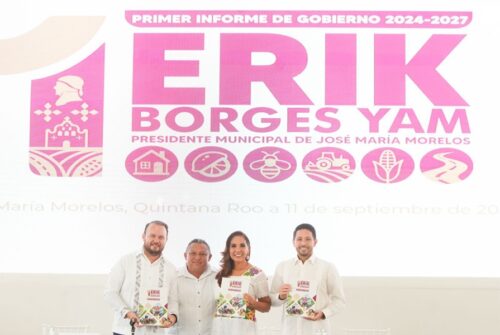 Chetumal, Quintana Roo, 18 de septiembre.– El presidente de la Junta de Gobierno y Coordinación Política (JUGOCOPO) del Congreso del Estado, Renán Sánchez Tajonar, acompañó a la gobernadora Mara Lezama en los informes de resultados de las presidentas y presidentes municipales de Quintana Roo, donde destacó el impacto positivo que ha tenido la transformación en la vida de las familias.