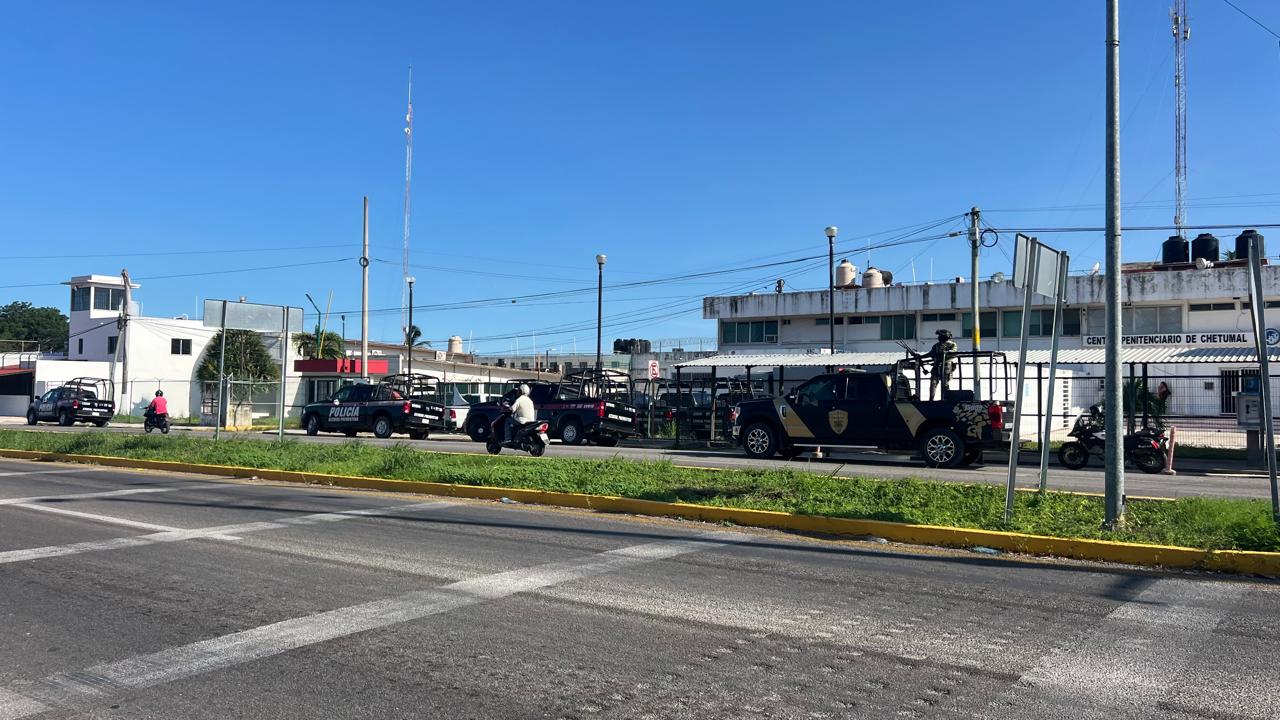 CHETUMAL, Quintana Roo, 20 de agosto. — El reporte de una riña al interior del Centro de Reinserción Social de Chetumal, activó el Código Rojo, al lugar arribaron múltiples unidades de la Secretaria de Seguridad Ciudadana (SSC) y elementos de la Secretaría de la Defensa Nacional, y elementos del Grupo Jaguar.