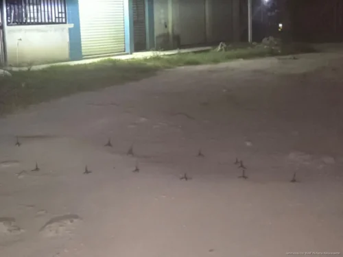 Durante el despliegue de seguridad, autoridades localizaron ponchallantas caseros, dos cartulinas con mensajes intimidatorios y múltiples casquillos percutidos, evidenciando la magnitud del enfrentamiento