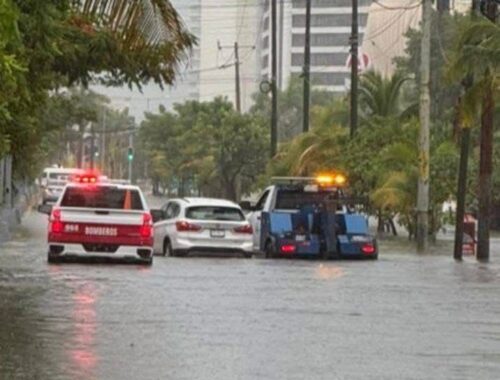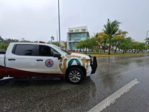 Cancún.-Las brigadas de la Dirección de Tránsito, Policía Municipal, Protección Civil, Bomberos y Servicios Públicos, se activaron durante la mañana de este miércoles ante las intensas lluvias registradas y que se pronostica continúen por la tarde noche.