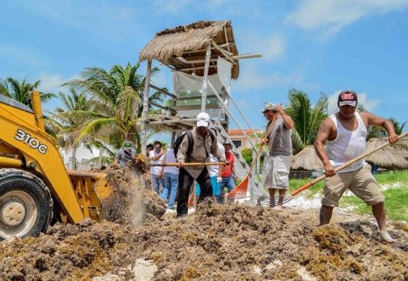 “Estamos trabajando de las cuatro de la mañana a las seis de la tarde. Tenemos manchones de sargazo de la orilla de la playa hacia tierra adentro de cinco o seis metros, pero de la playa hacia el mar, hay manchones hasta de 40 metros en un radio de cuatro kilómetros, que es donde estamos atacando principalmente el problema”, explicó.