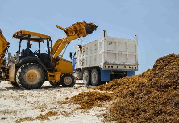PUERTO MORELOS, Quintana Roo, 22 de julio.- Ante el arribo masivo de sargazo que afecta desde hace unos días a Puerto Morelos, el gobierno de la presidenta municipal Laura Fernández Piña activó un plan emergente de limpieza de playas, en el que participa una cuadrilla de más de 40 trabajadores municipales, quienes con la ayuda de unidades mecánicas retiran diariamente más de 100 toneladas de la planta marina.