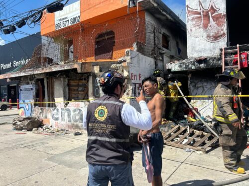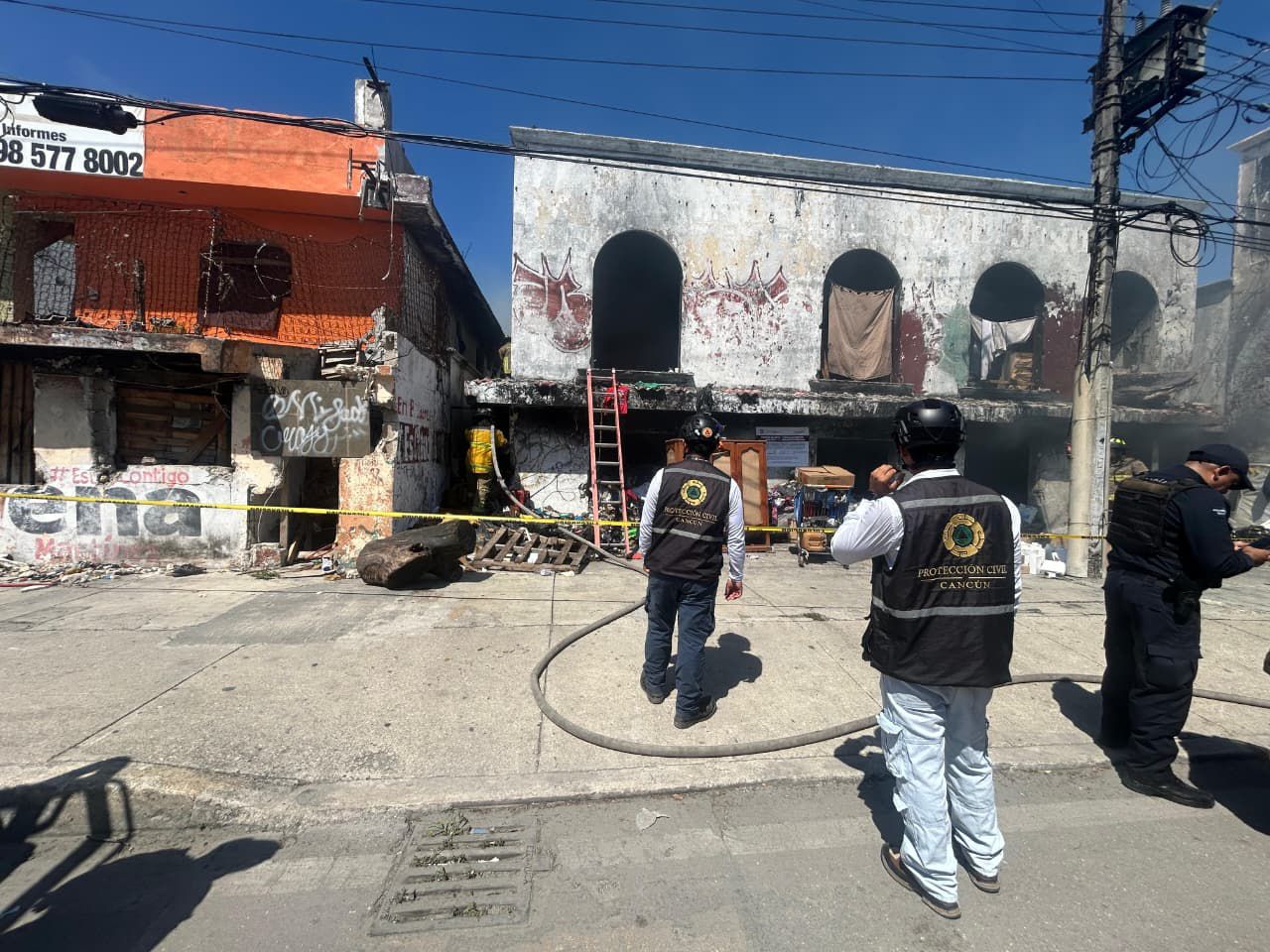 Mientras los bomberos finalizaban las labores en Puerto Cancún, otro llamado de emergencia alertó sobre un incendio en el hotel Acapulco, un edificio abandonado desde hace años en la supermanzana 67, cerca del cruce con la calle 19 (Torcasita), sobre la avenida José López Portillo.