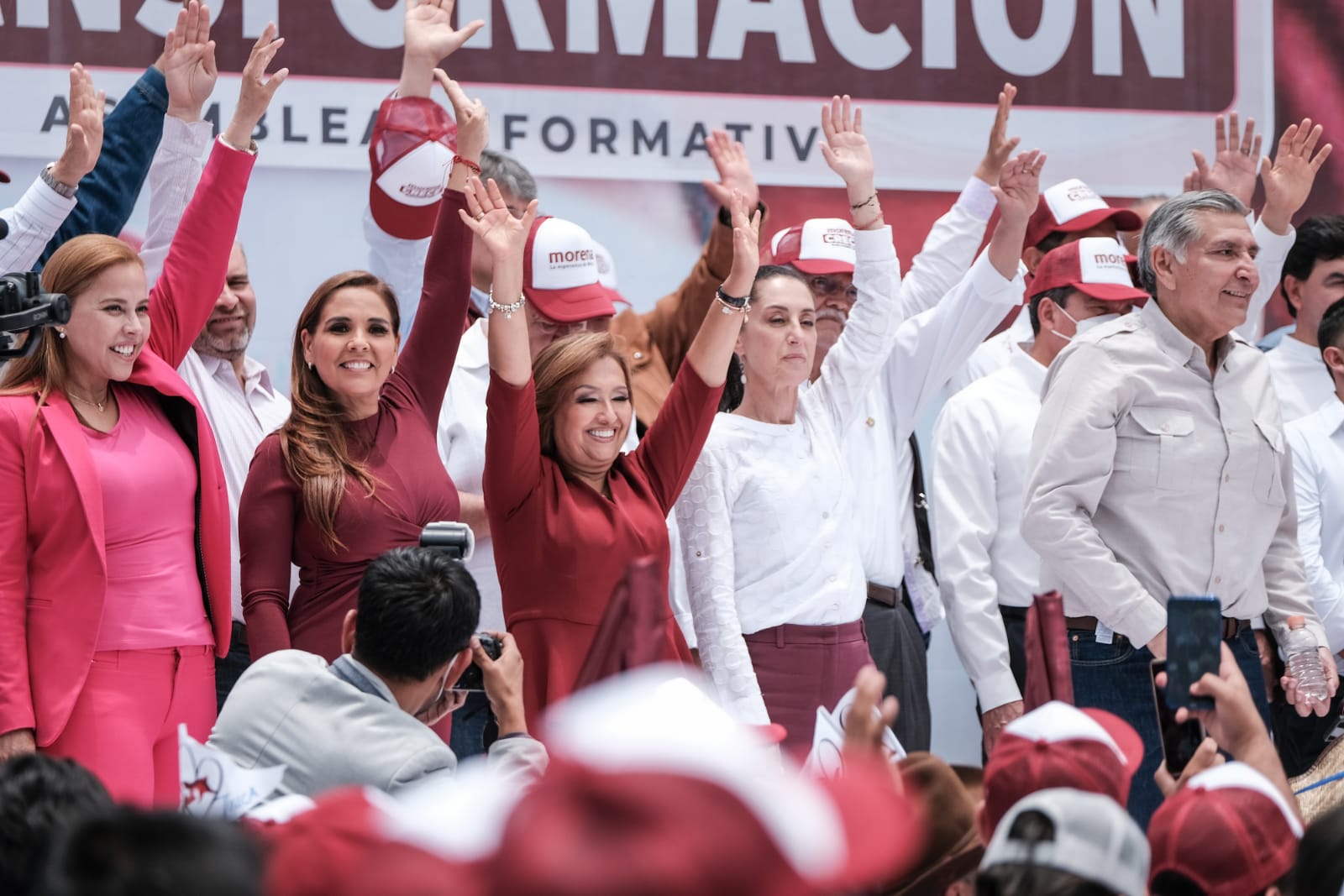 Horas antes de recibir su constancia que la acredita como gobernadora electa, participó en el acto convocado por la dirigencia nacional y en el que afirmó que el corazón de la Cuarta Transformación son las mujeres.