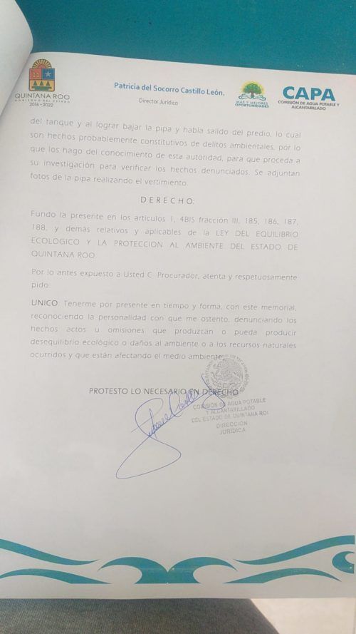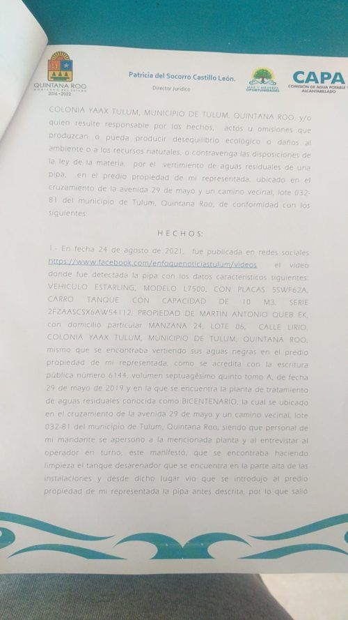 TULUM, Quintana Roo, 26 de agosto. – Luego del vertido de aguas negras en un predio de este municipio, un grupo de 20 piperos justificó la acción diciendo que las plantas de tratamiento no sirven; CAPA por su parte, rechazó esta acusación e interpuso una denuncia en la Procuraduría Ambiental.