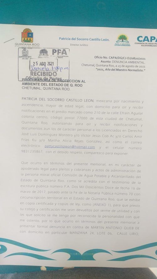 “Sabemos que está mal echar el agua en el cárcamo de la planta Bicentenario, pero así son las órdenes que nos dieron. No tenemos la culpa. ¿Dónde más podemos tirar el agua? Tampoco sirve la planta de Chemuyil. Ya llevan rato así”, comentaron los operarios.