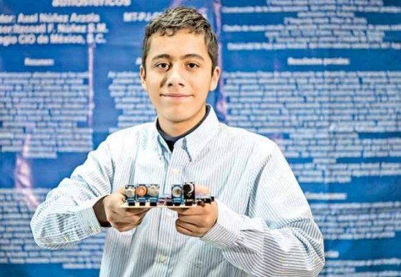 CIUDAD DE MÉXICO, 30 de Enero.- Axel Núñez Arzaola tiene 14 años, estudia tercero de secundaria y es inventor de un aparato que ha denominado Sistema microsatelital para la medición de contaminantes atmosféricos.
