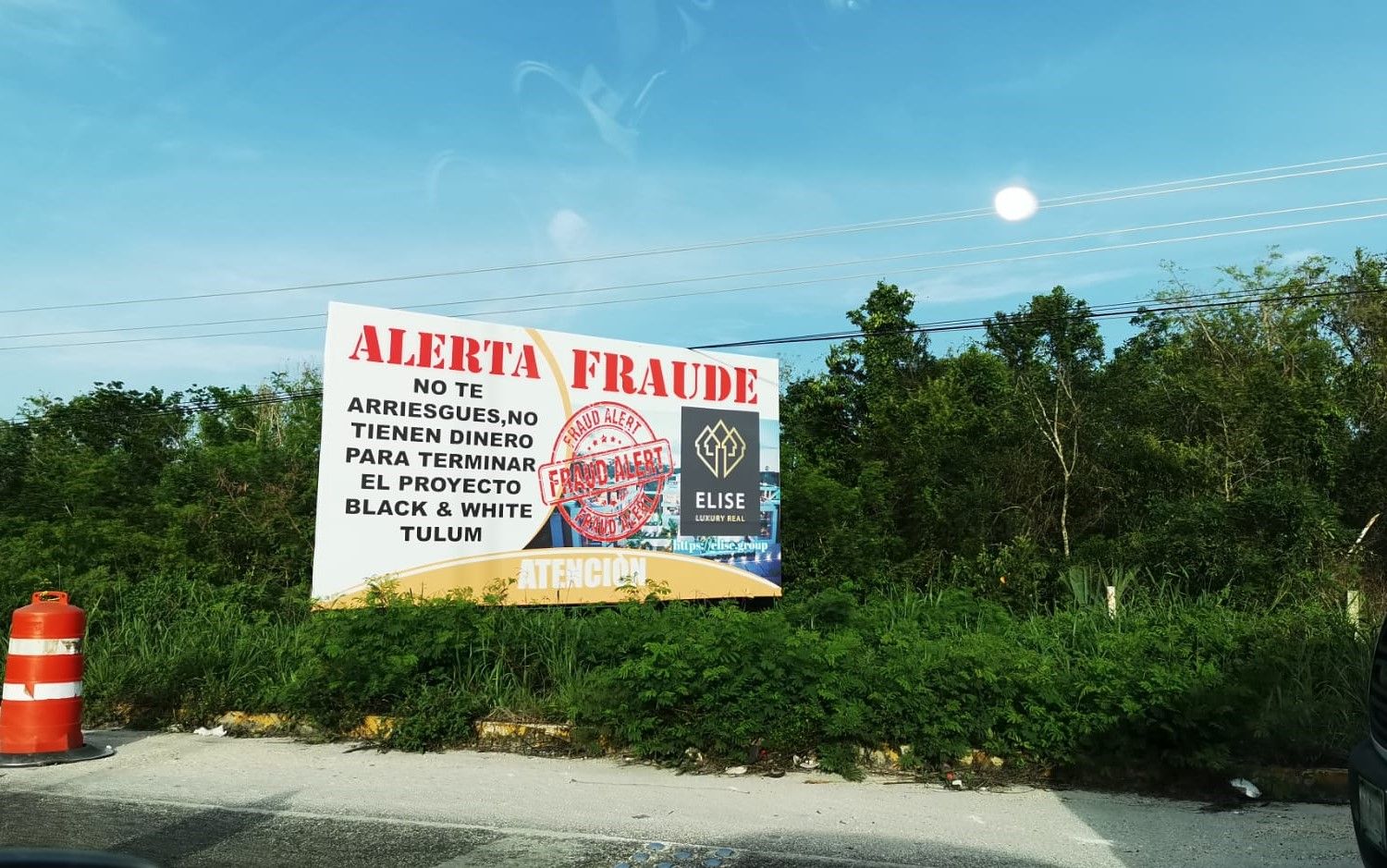 PLAYA DEL CARMEN, Quintana Roo, 21 de junio. – Alertan mediante un espectacular, de los posibles fraudes que comete la desarrolladora Elise Real Estate en el municipio de Tulum.