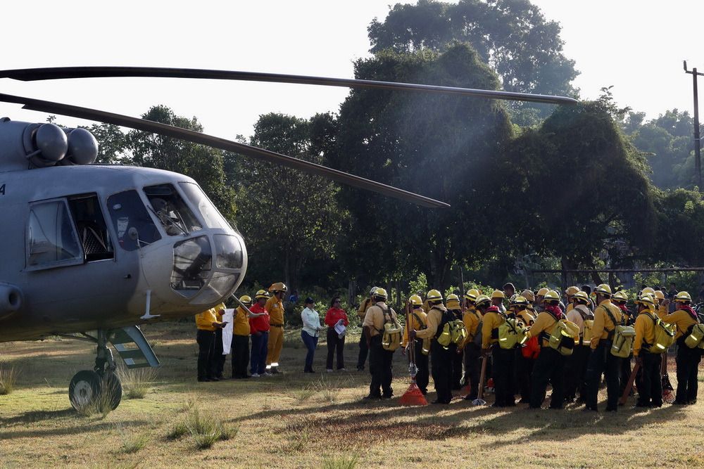 Un avión Texan que para identificar el área afectada y un helicóptero MI-17 con helibalde con capacidad de dos mil 500 litros de agua, así como un vehículo tipo cisterna.