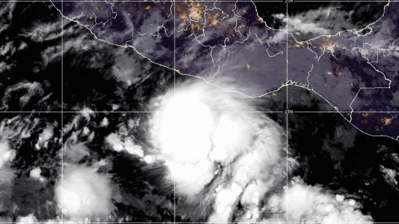 El ciclón se encuentra a 320 km al oeste-suroeste de Puerto Ángel, Oaxaca y se desplaza al nor-noroeste a 6 km/h con vientos máximos sostenidos de 120 km/h y rachas de hasta 150 km/h.