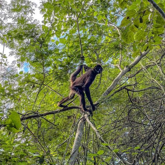 El mono araña en su ambiente natural es todo un espectáculo./Imagen Punta Laguna Monkey Reserve FacebookLas visitas son guiadas por habitantes locales que custodian el lugar y con ellas se aprende sobre la importancia de conservar el ambiente y proteger el entorno natural de los monos araña y de los demás animales que lo habitan. Punta Laguna es sólo la puerta de entrada al Área de Protección de Flora y Fauna “Otoch Ma’ax yetel Kooh” (la casa del mono araña y del puma).