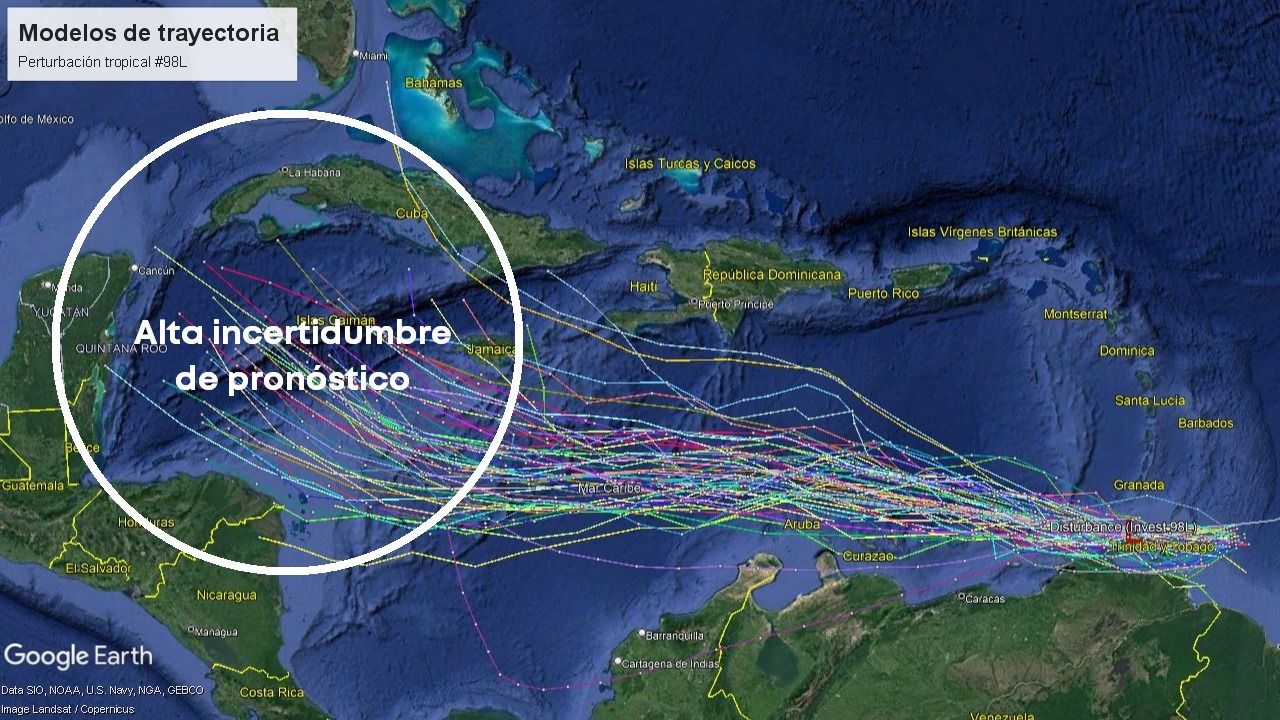 El NHC destacó que después del sábado es complicado determinar qué podría suceder con la evolución de perturbación 98L, por lo que anticipó que se debe estar al pendiente de la información meteorológica ante cualquier novedad.