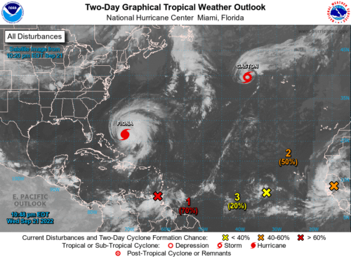 Dacuerdo con la información de NOAA NWS National Hurricane Center, en la noche del sábado 24 de septiembre, esta perturbación podría estar al sur de la isla de Jamaica, posiblemente como una tormenta tropical.