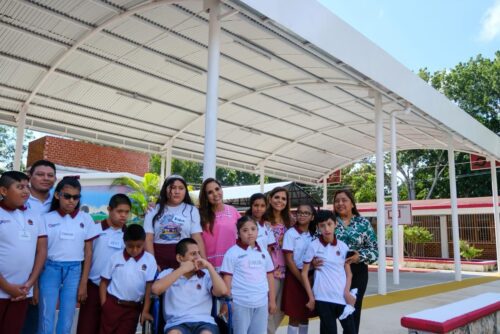 “Este domo representa justicia social a estudiantes, 29 alumnas y alumnos que todos los días vienen aquí, en donde les enseñan que la educación especial no se trata de diferencias, sino de amor, de empatía y oportunidades para todas y todos”, expresó la gobernadora Mara Lezama acompañada de la presidenta honoraria del Sistema DIF Quintana Roo, Verónica Lezama Espinosa.
