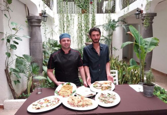 “Las pastas caseras, hechas a diario por el chef italiano Alessio Bertoli, las pizzas tradicionales y los ingredientes típicos de la península, se combinan con las mejores carnes, mariscos y pescados del Caribe Mexicano”. Explicó Giacomo gerente de Ambasciata d´Italia.