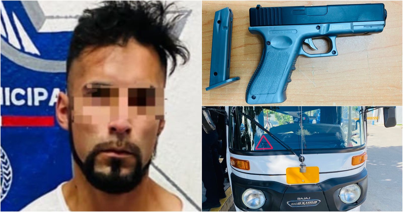 PLAYA DEL CARMEN, Quintana Roo, 31 de enero. – Policías de la Secretaría de Seguridad Pública y Tránsito Municipal de Solidaridad aseguraron a un sujeto que tenía en su posesión una réplica de arma de fuego, señalado de amenazar de muerte a una mujer, en el fraccionamiento Paseos Xcacel.