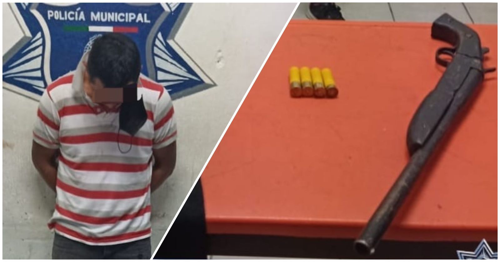 Al realizarle una revisión de seguridad, al sujeto identificado como Manuel “N” de 39 años de edad, originario del estado de Quintana Roo, se le encontró un arma de fuego color negro y 4 cartuchos calibre 20,