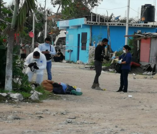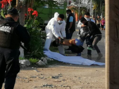 PLAYA DEL CARMEN, Quintana Roo, 13 de diciembre. – En plena vía pública de In House, un joven amordazado de pies y manos, la cara cubierta con su playera, fue ejecutado de al menos tres impactos de bala de un arma calibre .45, incluyendo el “tiro de gracia”.