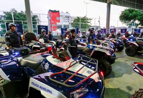 PLAYA DEL CARMEN, Quintana Roo, 17 de Mayo.- El Ayuntamiento de Solidaridad entregó 25 cuatrimotos con equipamiento policiaco a la Dirección General de Seguridad Pública y Tránsito, acción con la cual se refuerza el sistema de vigilancia en diversos sectores de Playa del Carmen y Puerto Aventuras (colonias y fraccionamientos) a favor de los solidarenses y sus familias.