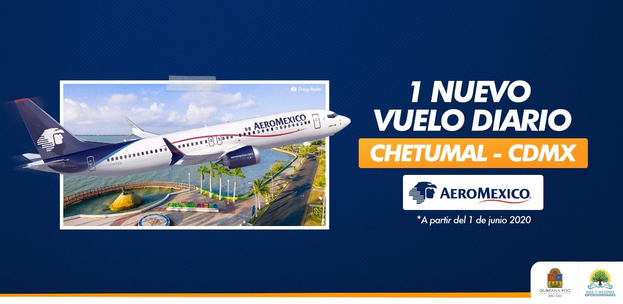 CHETUMAL, Quintana Roo, 3 de marzo.- El gobernador Carlos Joaquín anunció esta mañana que a través de la compañía Aeroméxico habrá un nuevo vuelo diario que conectará a Chetumal con la Ciudad de México.