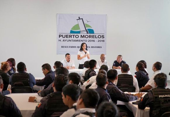 PUERTO MORELOS, Quintana Roo, 12 de abril.- La presidenta municipal Laura Fernández Piña anunció esta mañana un ajuste salarial a policías de Puerto Morelos, además de otorgarles seguros de vida y gastos médicos, a partir de esta quincena.