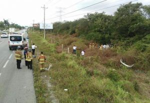 El accidente ocurrió en el kilómetro 307 del tramo carretero Cancún-Playa del Carmen, cuando dos mujeres viajaban a bordo de un auto tipo Aveo al parecer a exceso de velocidad.