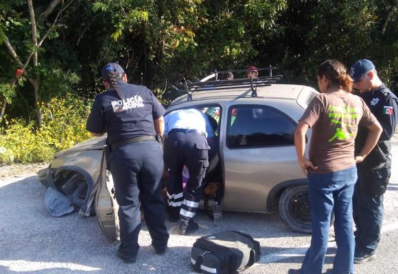 PUERTO MORELOS, Quintana Roo, a 03 de Febrero.- Una mujer resultada, tras impactarse dos vehículos en la carretera Leona Vicario- Puerto Morelos, a la altura del km 12.5, frente al cenote Mojarras, aproximadamente a las 9:25 de la mañana.
