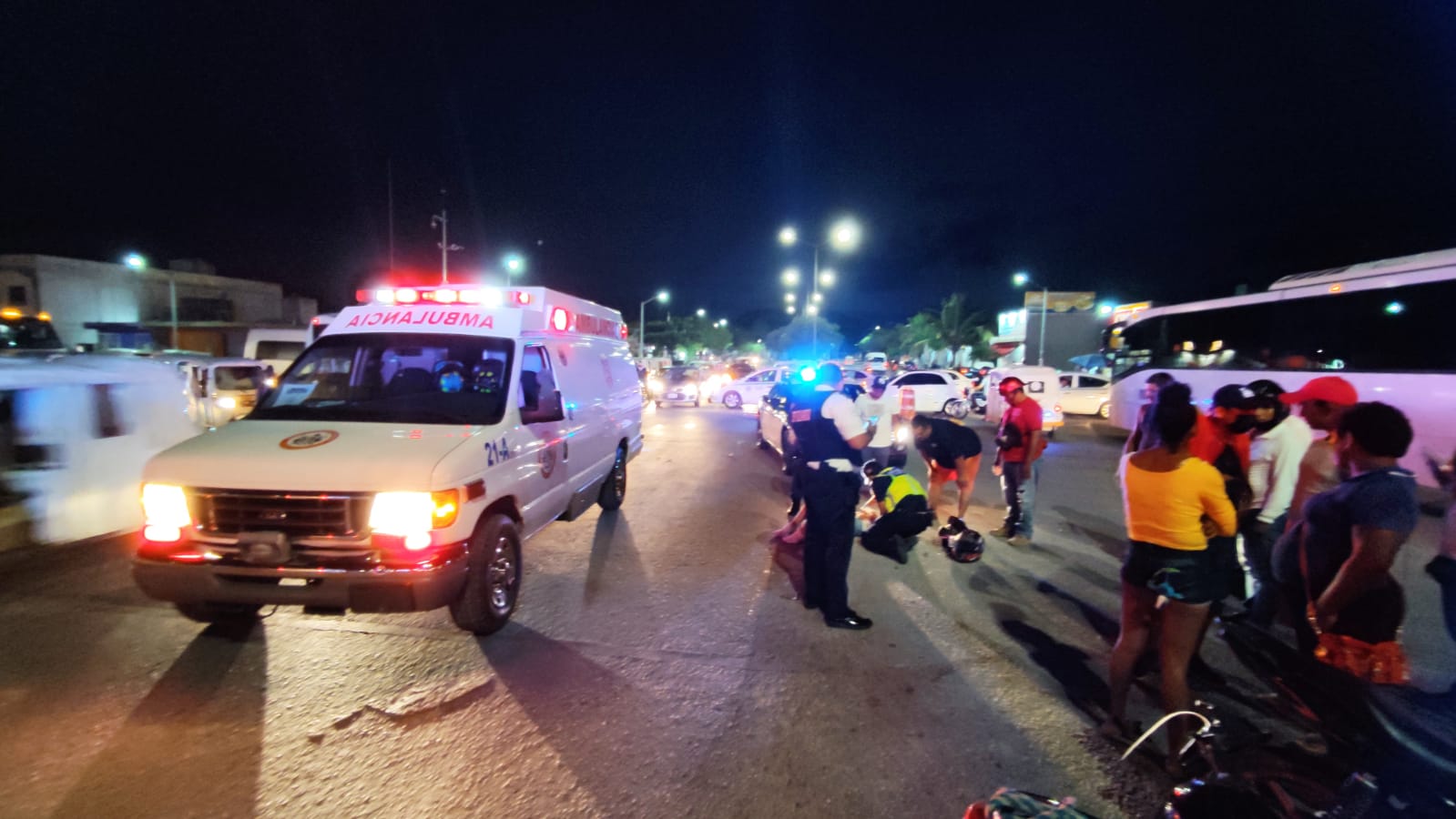 PLAYA DEL CARMEN, Quintana Roo, 25 de mayo. – El percance ocurrió en las inmediaciones del fraccionamiento Villas del Sol, donde paramédicos tuvieron que intervenir para la valoración de una mujer lesionada.