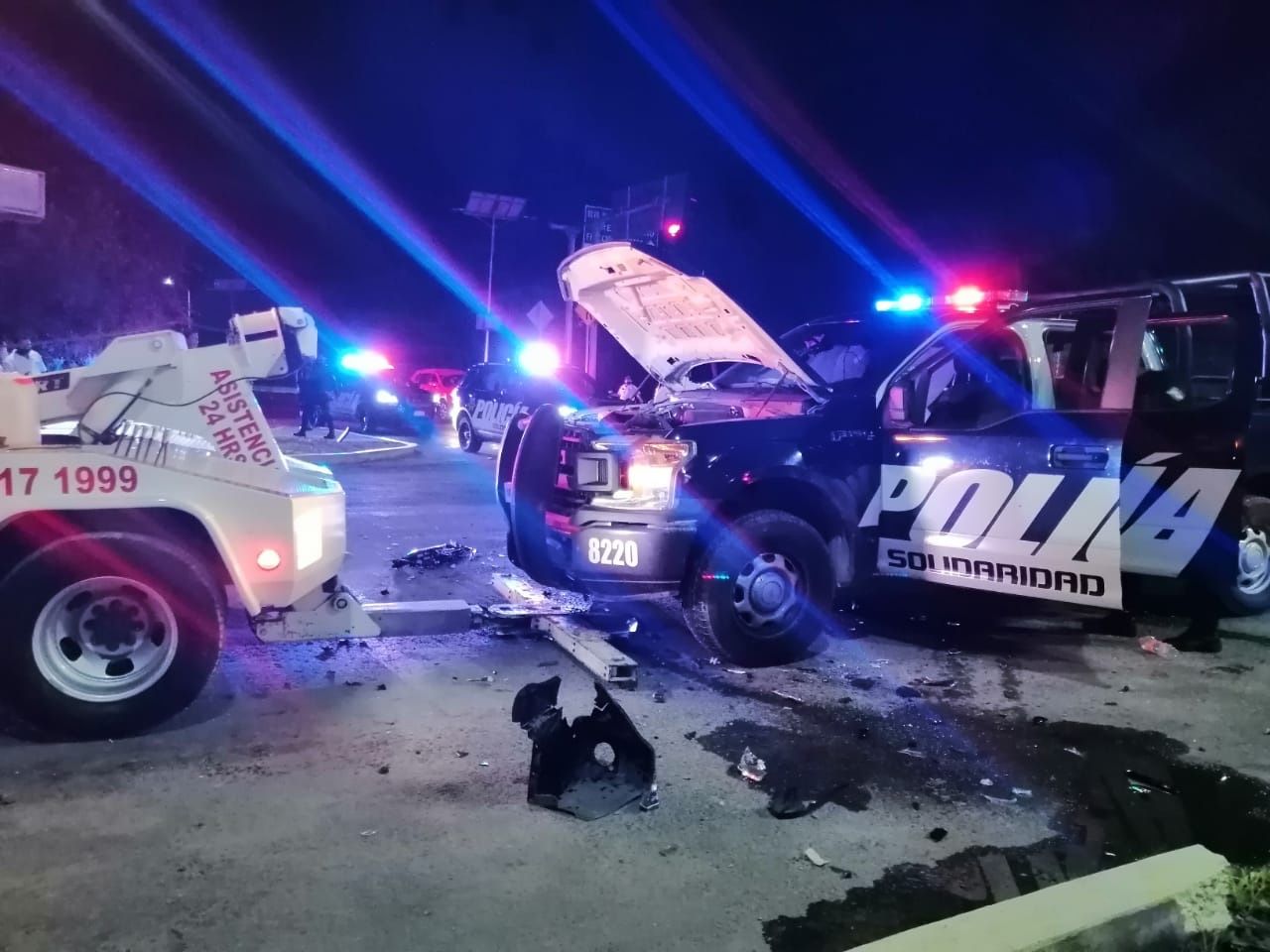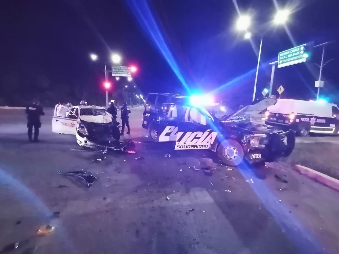 Los hechos ocurrieron sobre la avenida Luis Donaldo Colosio y la Avenida Lilis cuando la unidad del sindicato de taxistas Lázaro Cárdenas del Río se pasó el alto cuando la unidad policiaca iba en la atención de un reporte de emergencia.