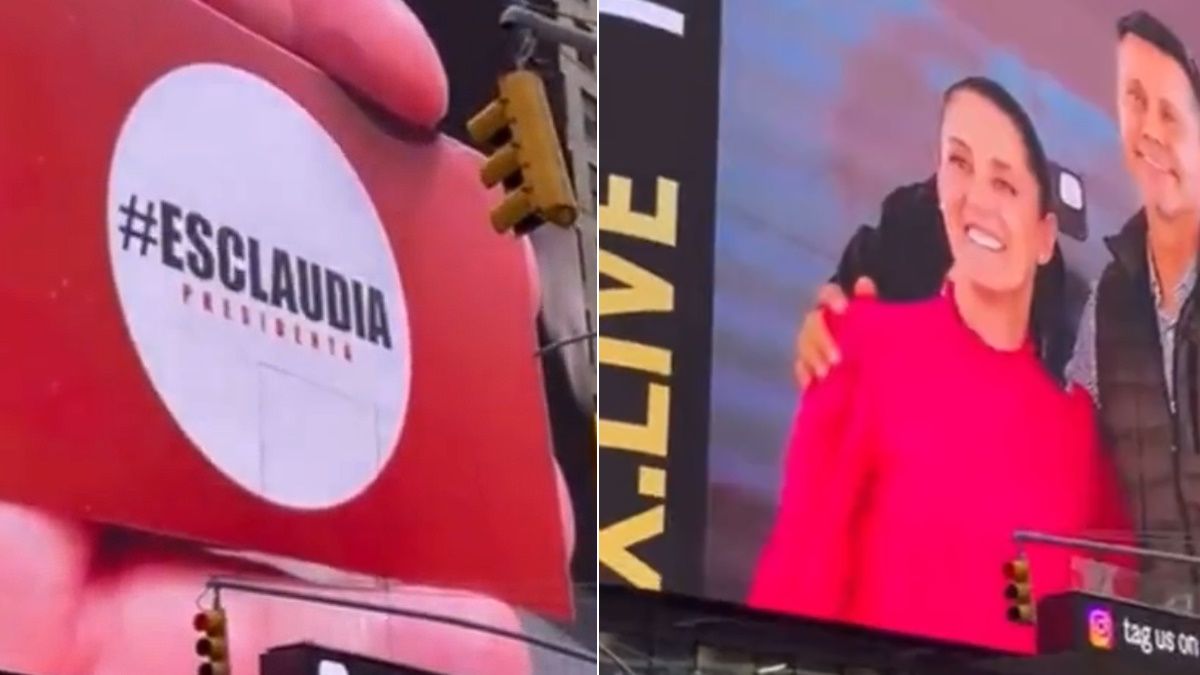 En redes sociales se difundieron videos en los que aparece Claudia Sheinbaum en un anuncio en el Times Square