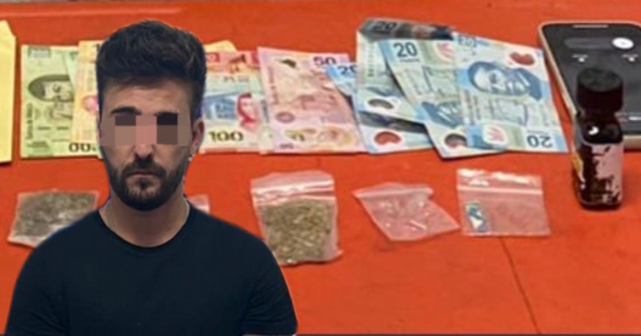 Al realizarle una inspección de seguridad a quien se identificó como Juan “N” de 32 años de edad, originario de Argentina, tenía en su posesión dos bolsas que contenían en su interior vegetal verde seco con las características de la marihuana, una bolsa que contenía en su interior cuatro piezas de papel con las características de la droga conocida como LSD, una bolsa con dos pastillas de color azul de una sustancia a determinar y un frasco color café con una sustancia a determinar.