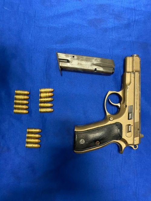 Los hechos ocurrieron cuando elementos policiales que se encontraban patrullando en la supermanzana 228, manzana 69, avenida Niños Héroes con dirección a la calle 79, observaron a un masculino saliendo del portón de un establecimiento, quien a simple vista en su mano portaba un arma de fuego, tipo escuadra, quien al notar la presencia empezó a correr, lográndose la detención del masculino.