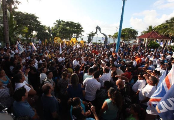 PLAYA DEL CARMEN, Quintana Roo, 14 de Mayo.- Ante cientos de personas que resistieron una repentina lluvia torrencial, la candidata de la alianza Por Quintana Roo al Frente, Cristina Torres, arrancó campaña rumbo a la alcaldía del municipio de Solidaridad y a la que prometió dar continuidad a los programas de gobierno, finanzas sanas y combate frontal al crimen organizado.