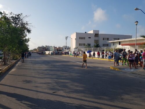 PLAYA DEL CARMEN, Quintana Roo, 05 de mayo. – A las 07:30 horas arrancó la aplicación de vacunas para adultos entre 50 y 59 años de edad en Playa del Carmen. Desde la noche del martes la gente comenzaba a formarse en alguno de los tres módulos que se instalaron.